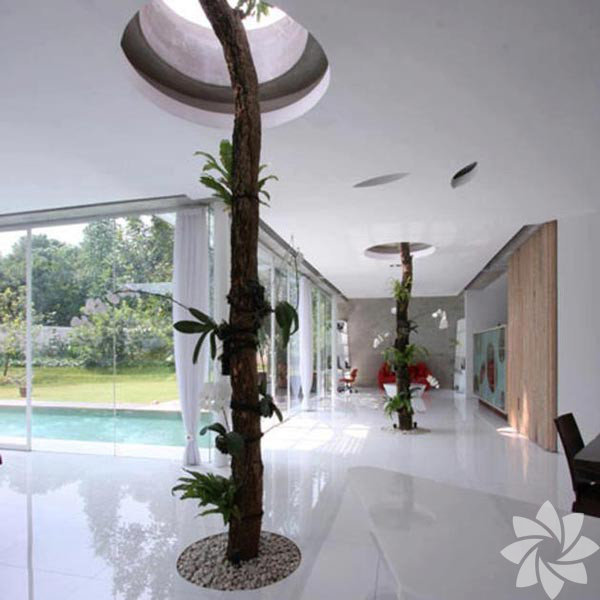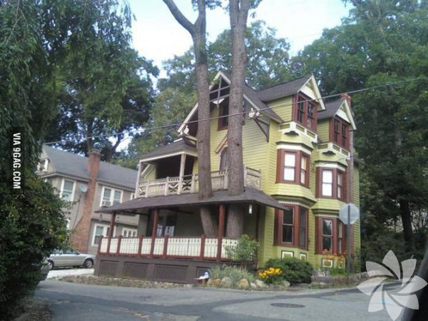 Düşünsenize evinizin ortasında kocaman bir çınar ağacı geçiyor.