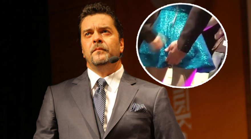 Şovmen Beyazıt Öztürk, programın konuk aldığı Aleyna Tilki'nin mini eteğine böyle müdahalede bulundu.